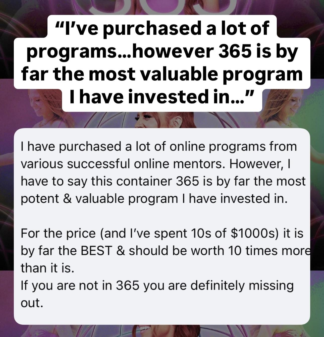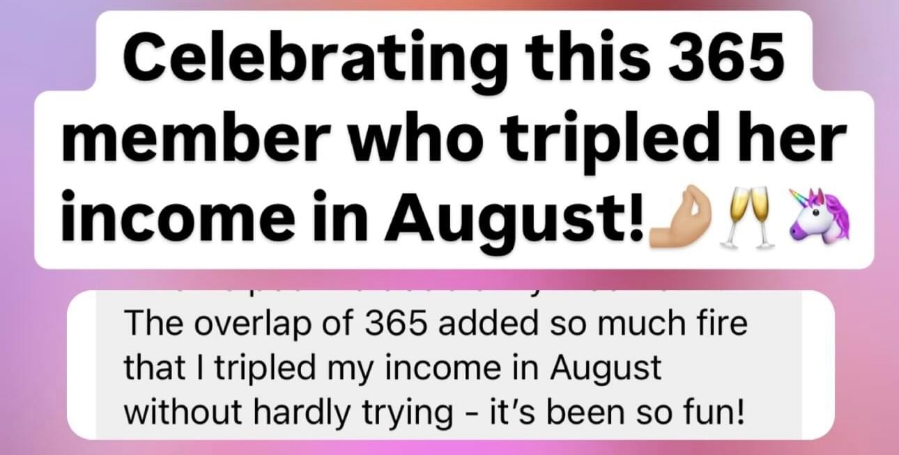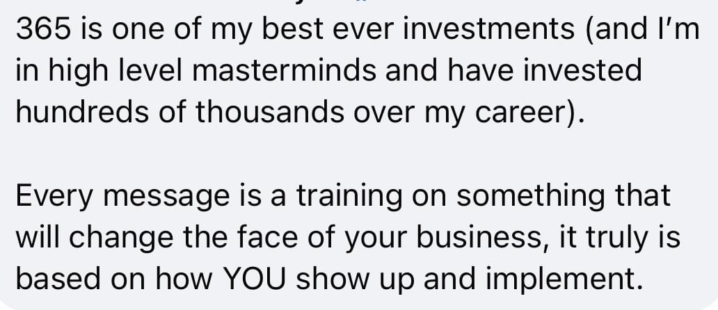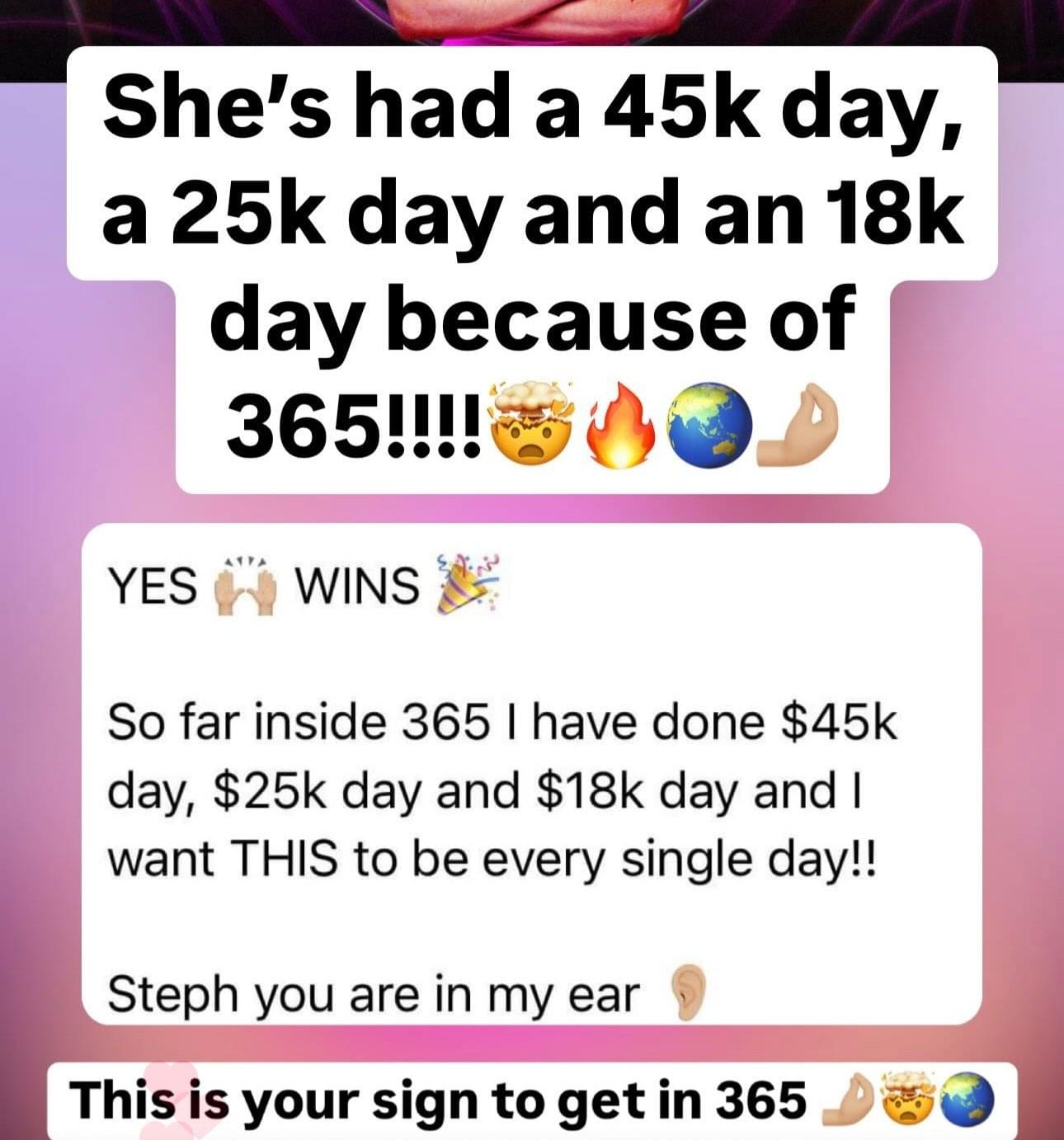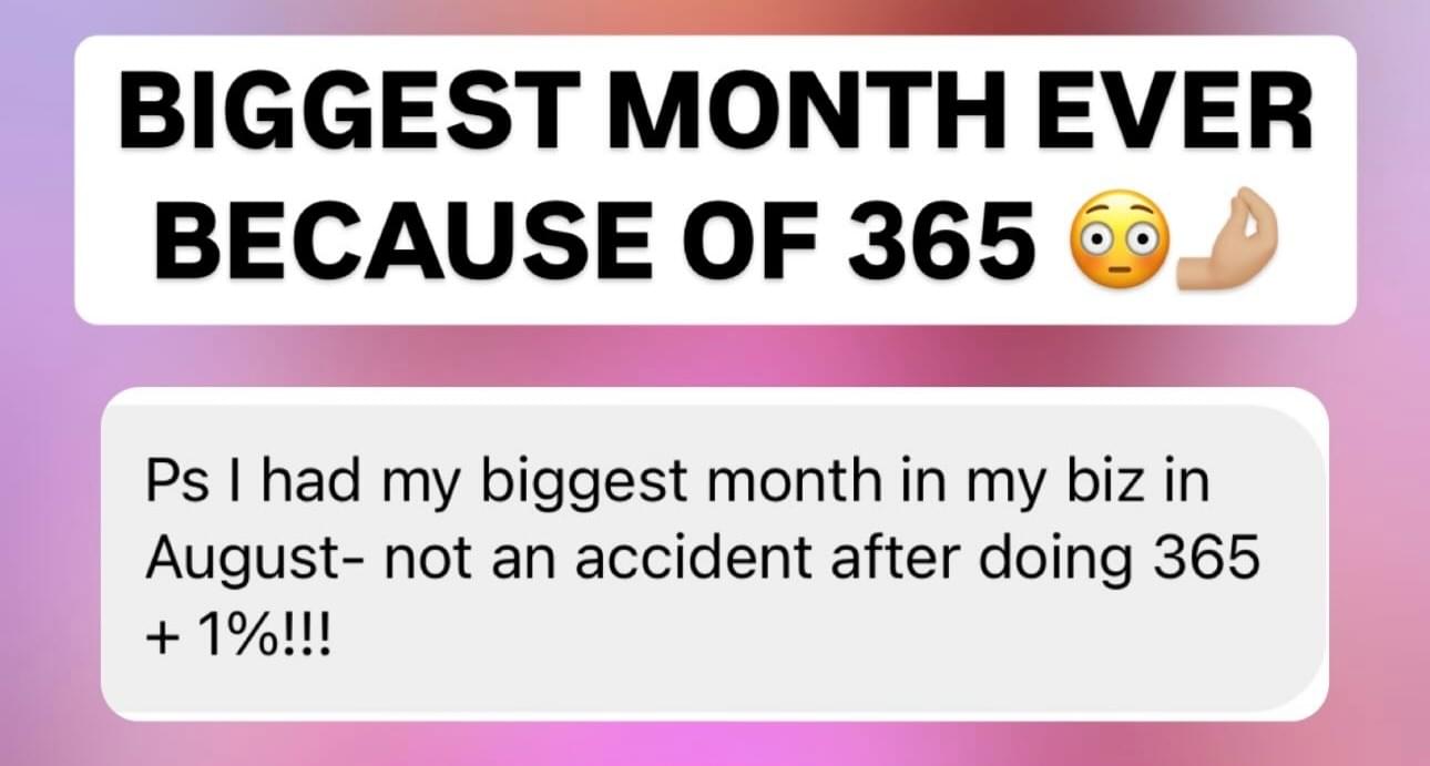 The 365 results don’t stop! A day doesn’t go by where I don’t get another DM or message about how 365 is doubling and tripling my clients income!