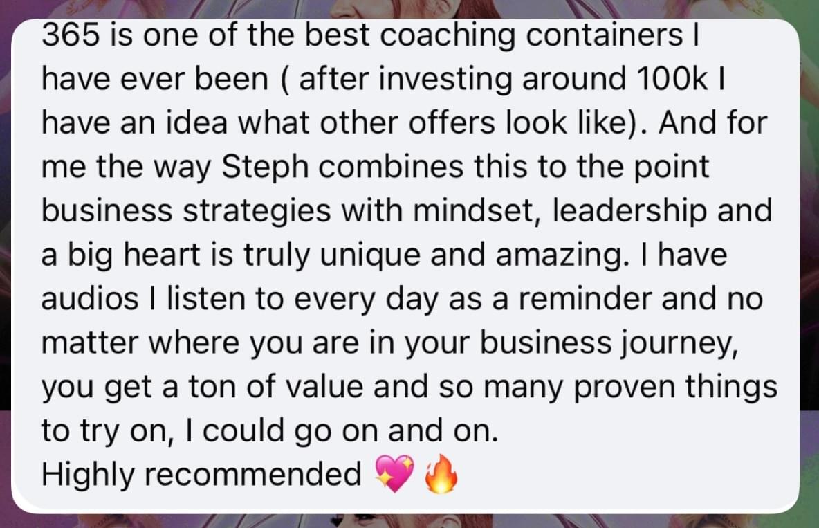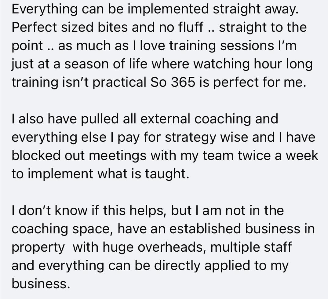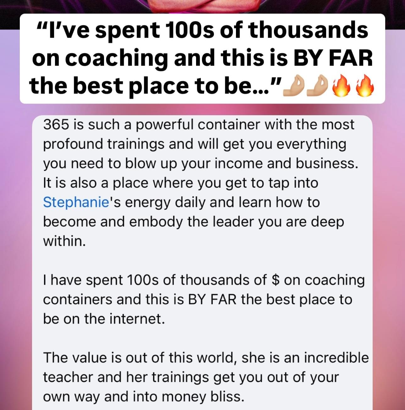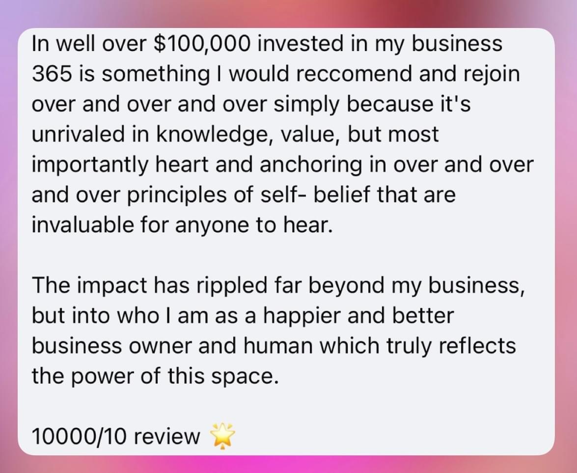 The 365 results don’t stop! A day doesn’t go by where I don’t get another DM or message about how 365 is doubling and tripling my clients income!